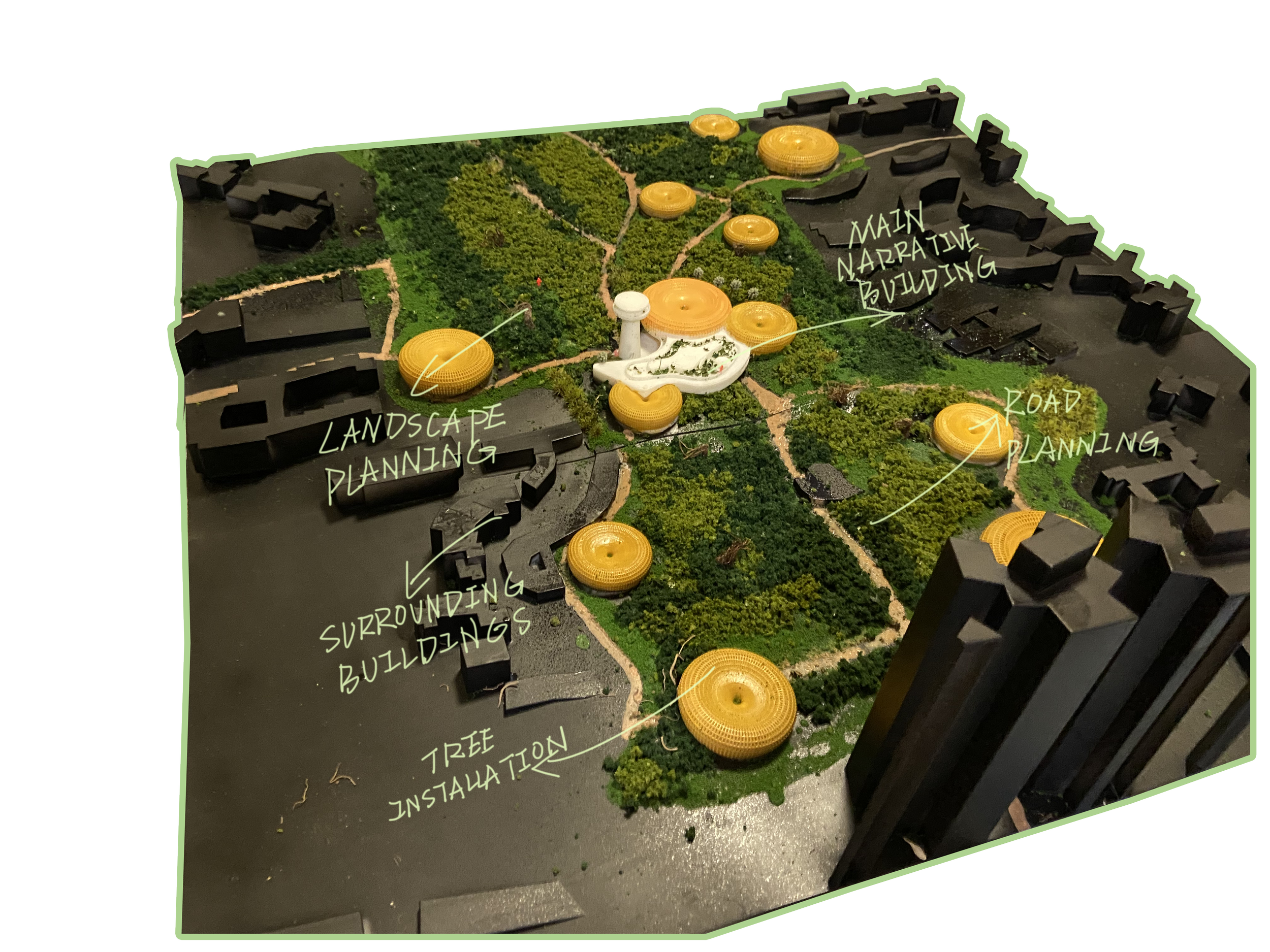 This project is trying to use film montage techniques and different narrative media to create an experiential narrative architecture. Provide a space for people to face anxiety directly, build a connection with nature, and allow people to re-examine themselves in the process of experiential behaviour and communication with the place, and get the opportunity to talk to themselves. "IF TREES TALKING" is an ideal possibility. The result of the story experience depends on people's spatial perception, which is felt by the experiencer, and the experiencer chooses the final result.